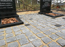 После создания основания мы покрыли территорию места захоронения гранитной брусчаткой,